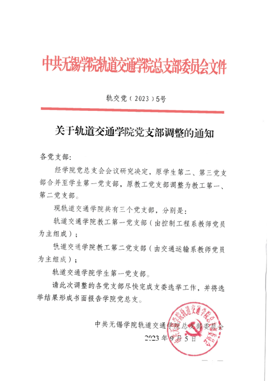 关于轨道交通学院党支部调整的通知