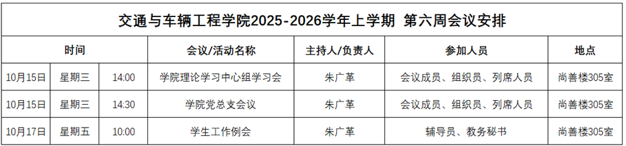 2025-2026学年上学期第六周会议安排