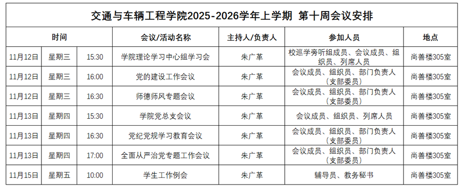 2025-2026学年上学期第十周会议安排