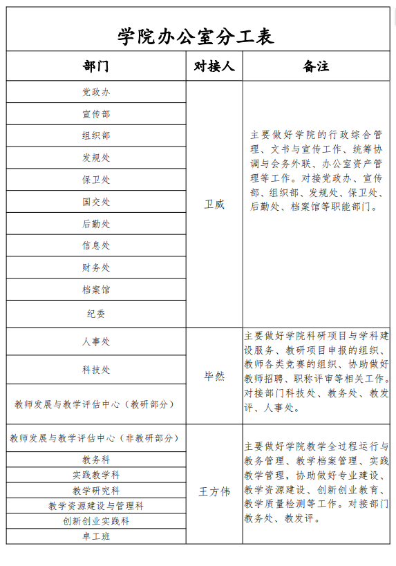 学院办公室分工表