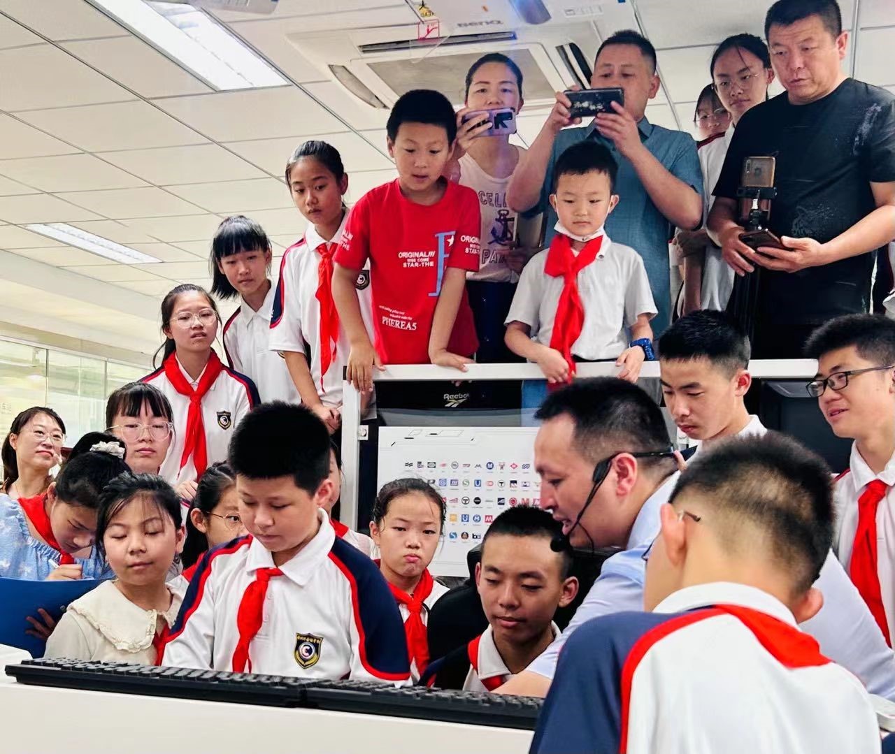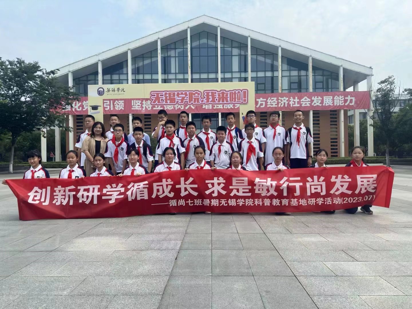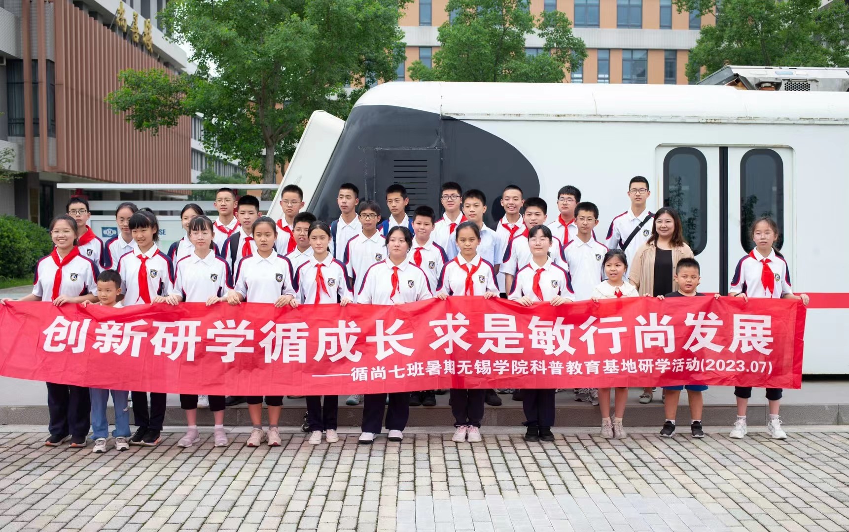 听着虫鸣,踏着热浪。7月2日上午,常州外国语初中循尚七班在刘薇老师的带领下和家长的陪同下,身着校服,怀着对中国轨道交通快速发展的敬意,来到无锡学院轨道交通科普教育基地进行研学活动。轨道交通学院刘永星老师、许雪老师负责科普讲解和接待。