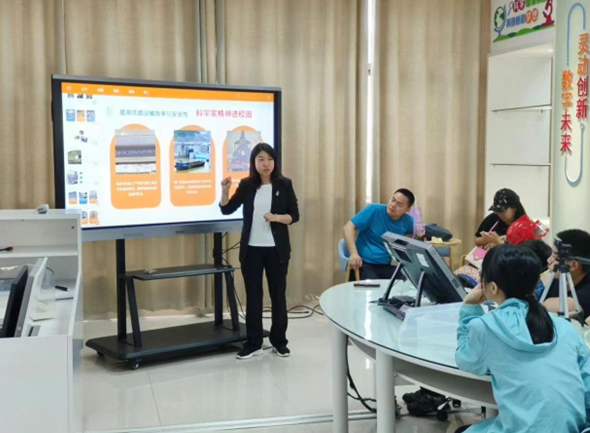 科学启迪智慧,科技创造未来。为弘扬科学家精神,轨道院副院长朱菊香围绕我国轨道交通发展历程,向小朋友展示了轨道交通事业发展过程中涌现出的一批优秀科学家以及他们所具备的科学家精神。朱菊香通过绘声绘色的讲述,激发起小朋友对科学家精神的崇敬之情,鼓励他们向詹天佑等老一辈科学家学习,秉持“家国情怀,勇于创新,追求卓越,甘于奉献”精神,为祖国的科学事业奋斗终身。科普志愿服务团队讲解员黄文昊则向小朋友做《高铁变脸记》科普讲座,通俗易懂地介绍了各式火车头背后所蕴含的科技奥秘和科学原理。